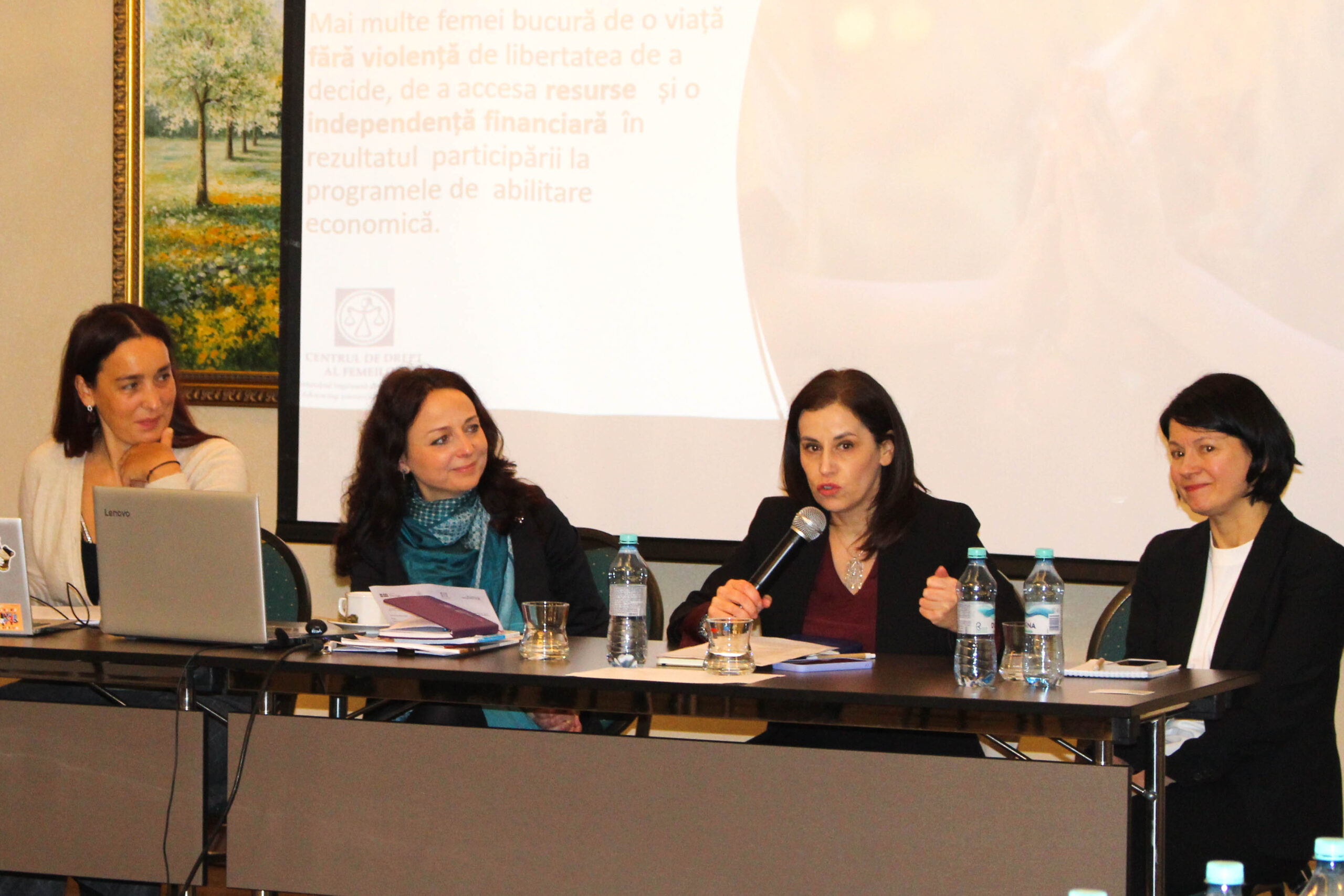 În cadrul mesei rotunde s-au trecut în revistă principalele rezultate atinse în etapa de pilotare a programelor de abilitare economică și s-a pus accent pe experiența valoroasă obținută în co-crearea programelor regionale. Directoarea executivă a Centrului de Drept al Femeilor, Angelina Zaporojan-Pîrgari, a menționat: „Potrivit statisticii, aproape fiecare femeie victimă a violenței în familie are unul sau doi copii. Noi înțelegem care este impactul acestui fenomen asupra întregii societăți și atunci când vorbim despre abilitare economică, ne dăm bine seama că o femeie se poate integra în societate datorită implicării tututor actorilor responsabili și celor care sunteți prezenți în această sală. Ne place să spunem că noi co-creăm programe, pentru că nu există programe care s-ar îmbrăca ca o mănușă pe Moldova. Noi le co-creăm împreună pentru că avem același interes.”
