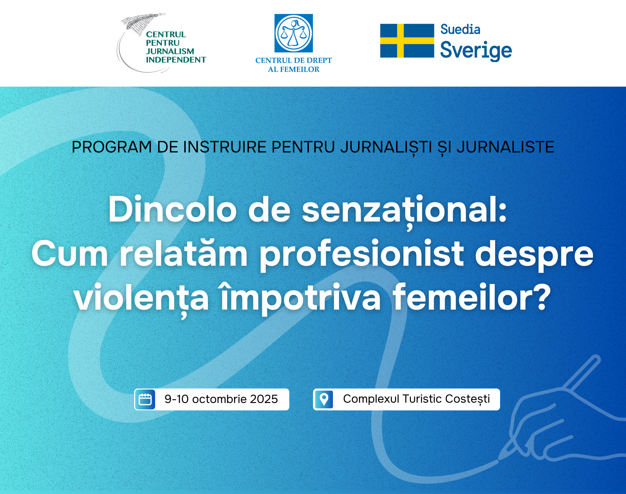 Programul de instruire este organizat de Centrul de Drept al Femeilor în colaborare cu Centrul pentru Jurnalism Independent și cu susținerea financiară a Suediei.